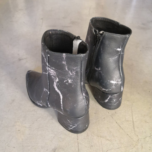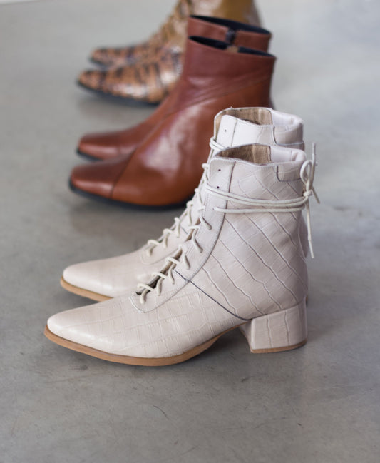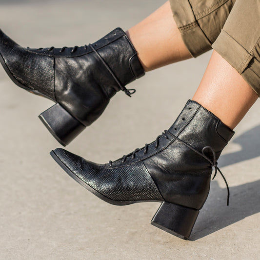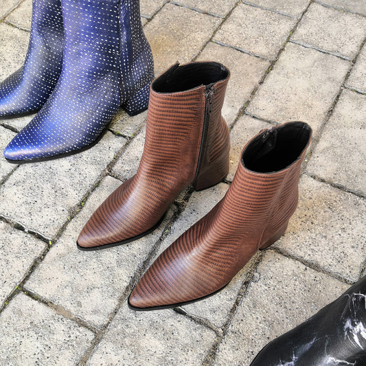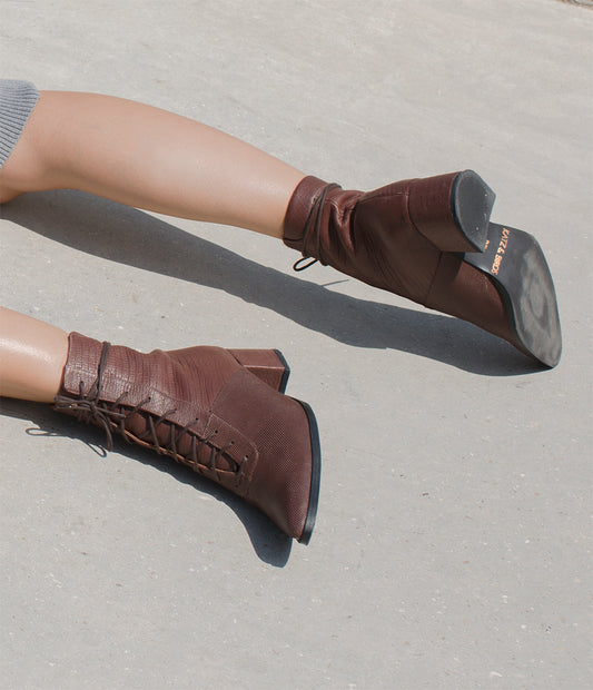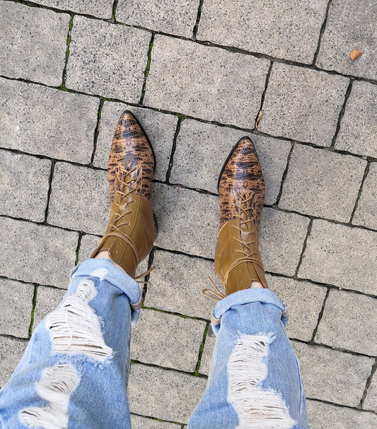 Printed Quartz-Brown Printed Leather Lace Up Ankle Boots